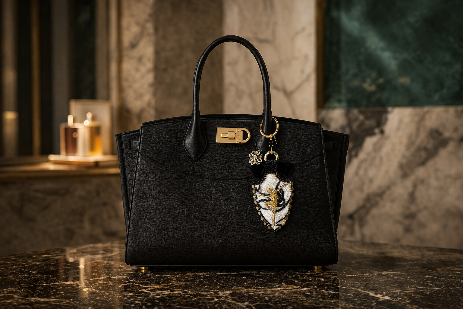 A refined artisanal piece designed to elevate any handbag.